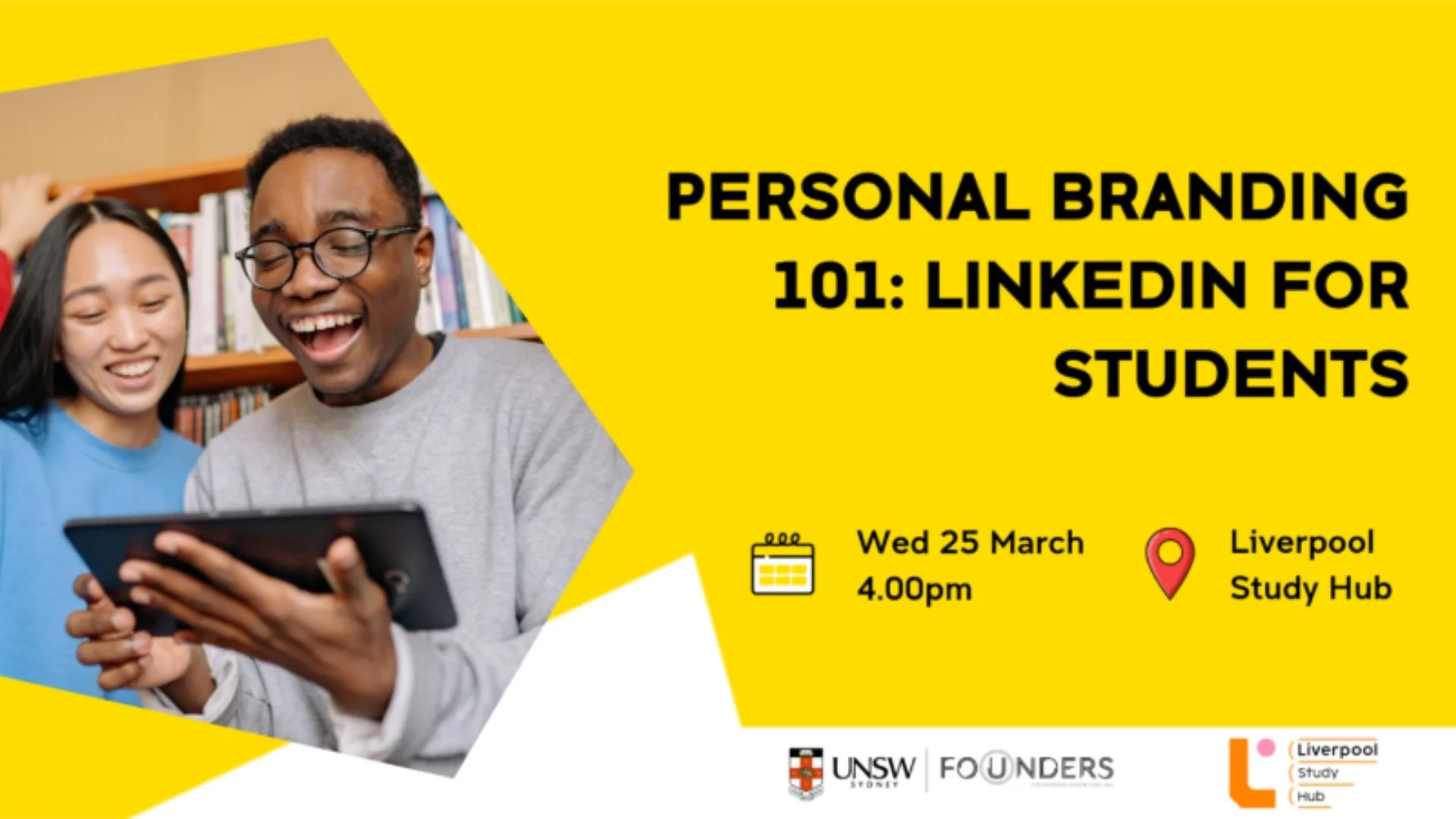 UNSW Founders and the Liverpool Study Hub are running a hands-on personal branding workshop for high school, university and TAFE students across South West Sydney. The session helps students build a strong professional presence and use LinkedIn with real purpose.